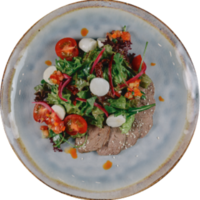 Лепешка роти, салат свежий, салат айсберг, сладкий соус чили, сметана, куриное филе, черри, руккола, ореховый соус, дробленый арахис