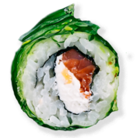 Рис, форель свежая, творожный сыр, авокадо, кунжут, нори. Соевый соус, имбирь, васаби. Ролл 8 штук